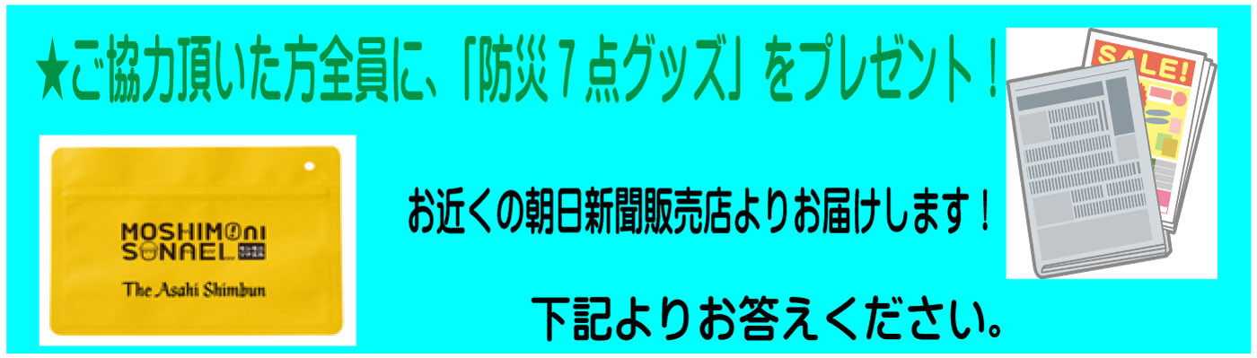 平素は朝日新聞をご愛読いただきまして、誠にありがとうございます。当ASA(朝日新聞サービスアンカー)では、今後とも『身近な地域の情報』・『正確に新たな情報』をお届けするよう努めて行きます。その一環として、生活情報の大きな柱である“折込チラシ”について、お客様のご意見をお聞かせ頂ければと思います。ご多忙のおり大変恐縮ですが、皆様ぜひアンケートにご協力お願いいたします。
