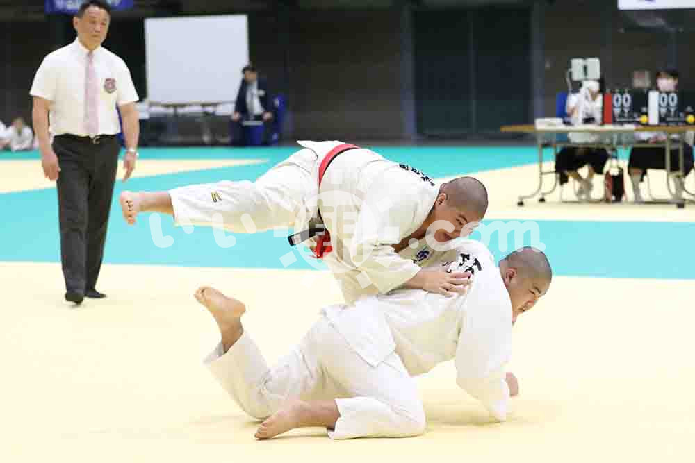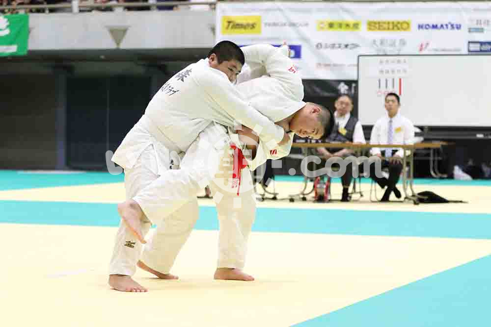061019【マルちゃん杯全日本少年柔道大会】中学男子団体決勝、大将戦で新井道場の上本晃大(左)が白石悠悟(埼玉栄中)の技をさばく
