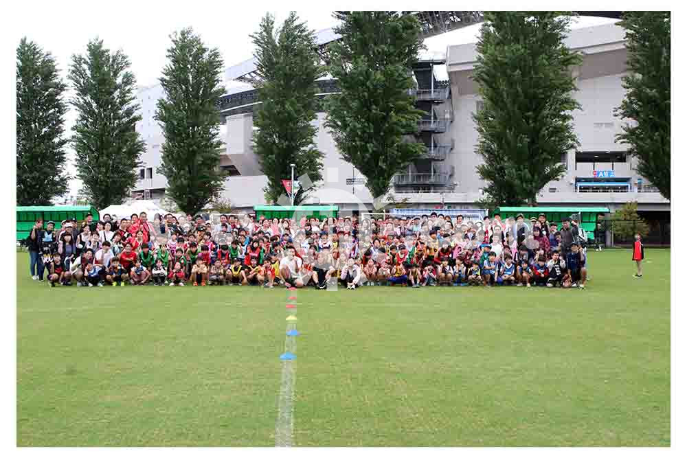 061022【浦和レッズかけっこ教室】参加者たちと記念撮影(2025年10月4日、埼玉スタジアム2002第3グラウンドで撮影)
