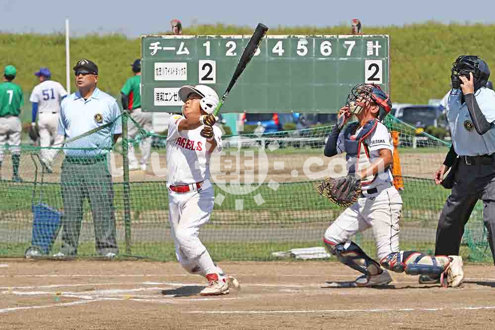 060001【スポ少軟式野球さいたま市中央ブロック予選】決勝1回裏、本塁打を放つ浦和エンゼルスの西岡康志郎