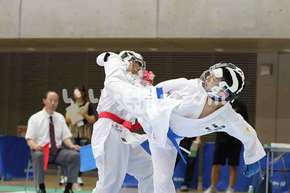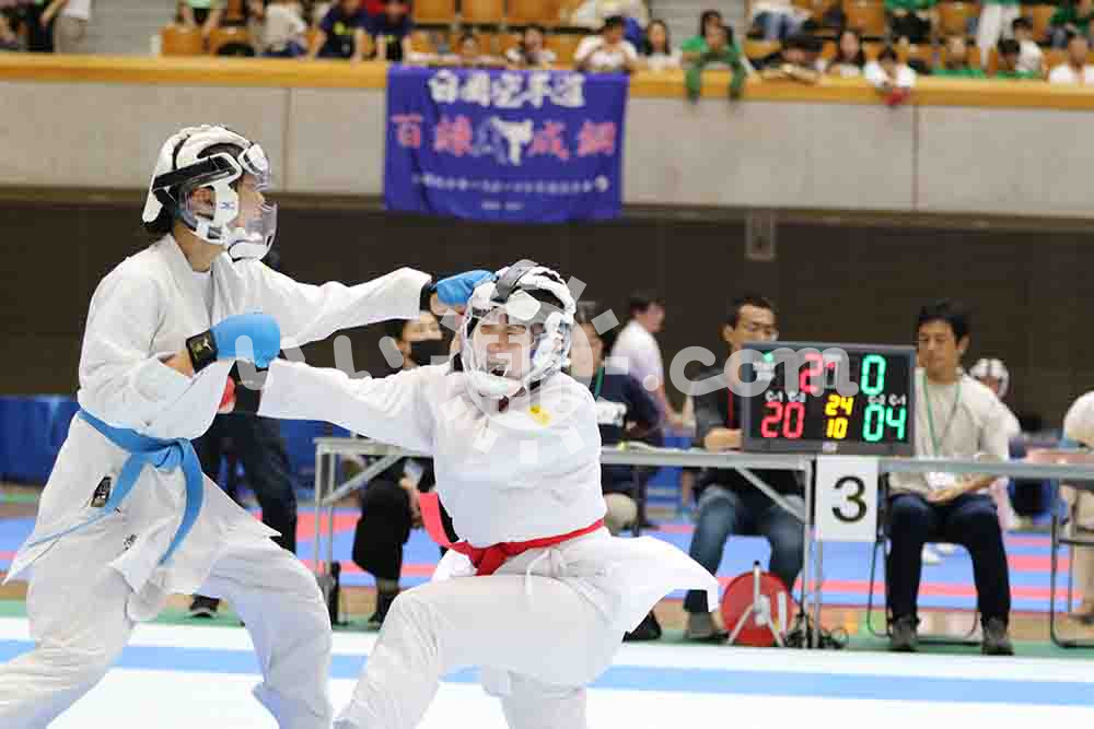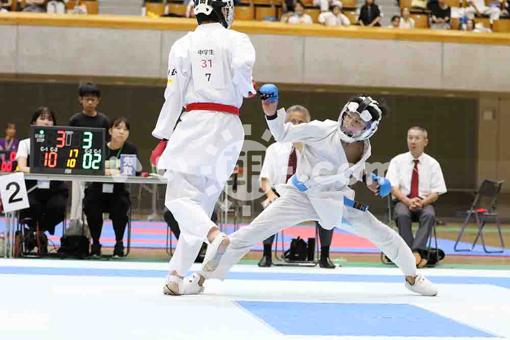 060007【埼玉県スポ少空手道交流大会】女子中学3年組手の部決勝で突きを決める須永理歩(志木向上会)