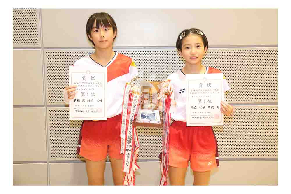 060013【埼玉県小学生バドミントン大会】女子6年ダブルス優勝の髙橋麗・秋庭心虹(志木ジュニア)