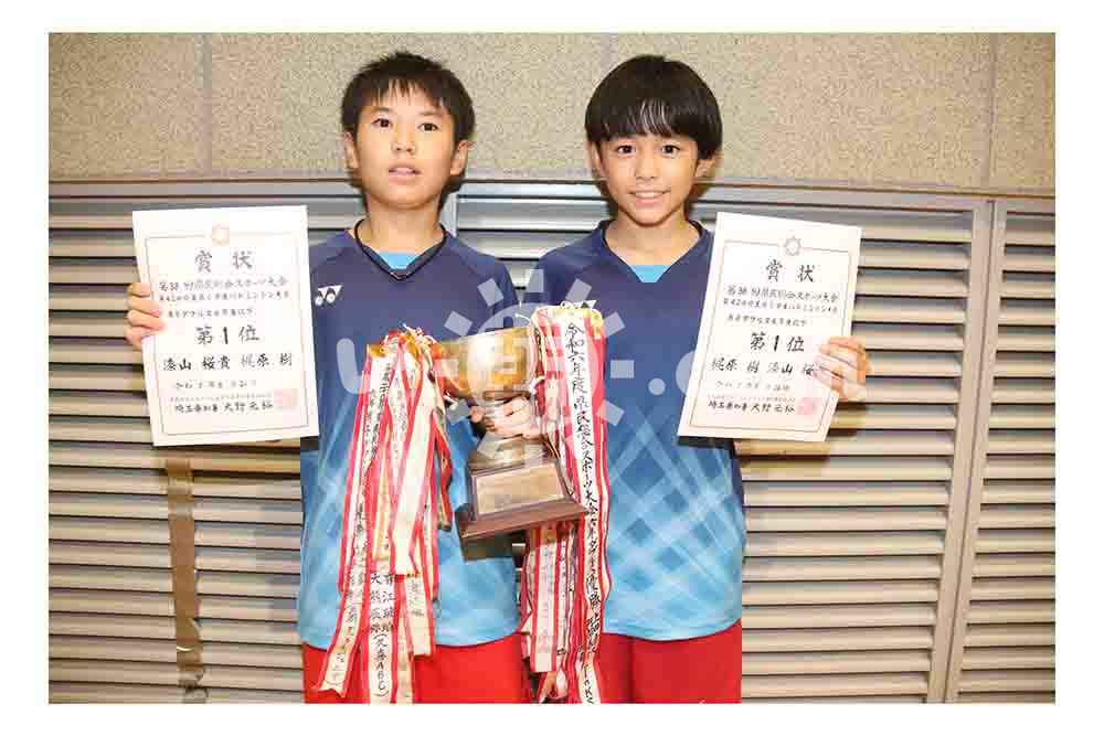 060016【埼玉県小学生バドミントン大会】男子6年ダブルス優勝の梶原樹・漆山桜貴(リンクス)